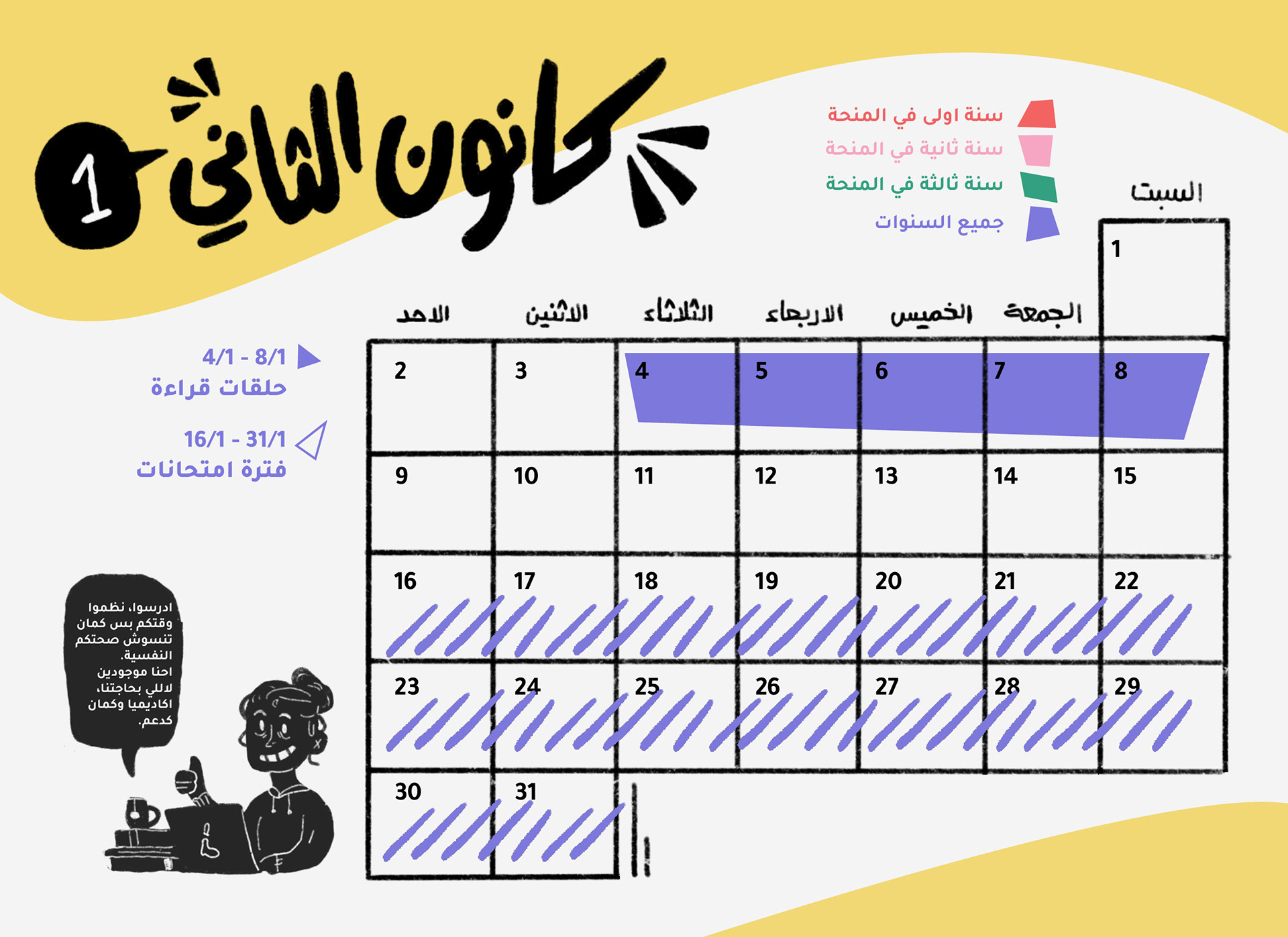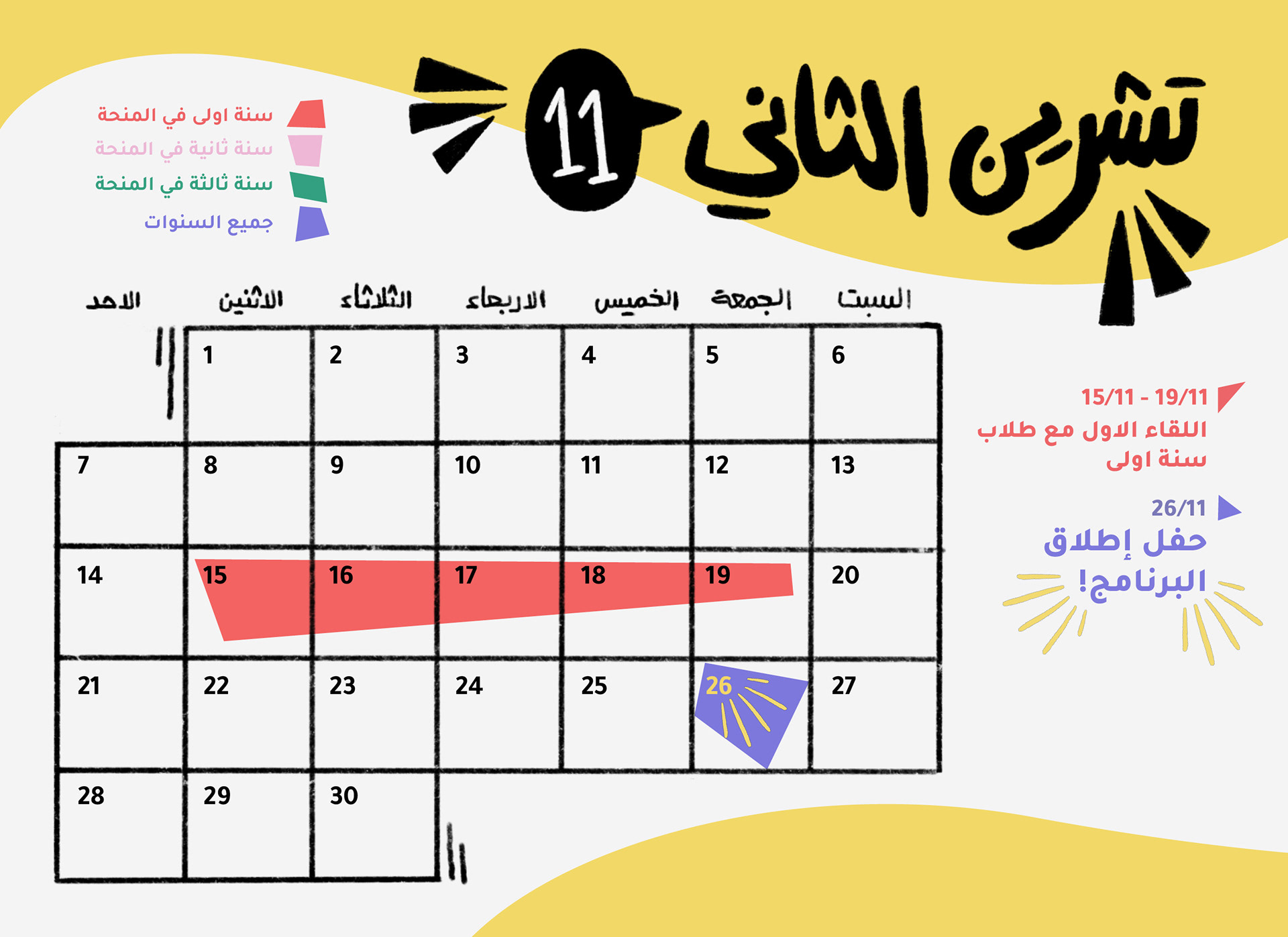 A calendar showcasing the Rawda Bshara Atallah scholarship program activities for the scholar year of 21/22. This work was made for the Arab Culture Association.