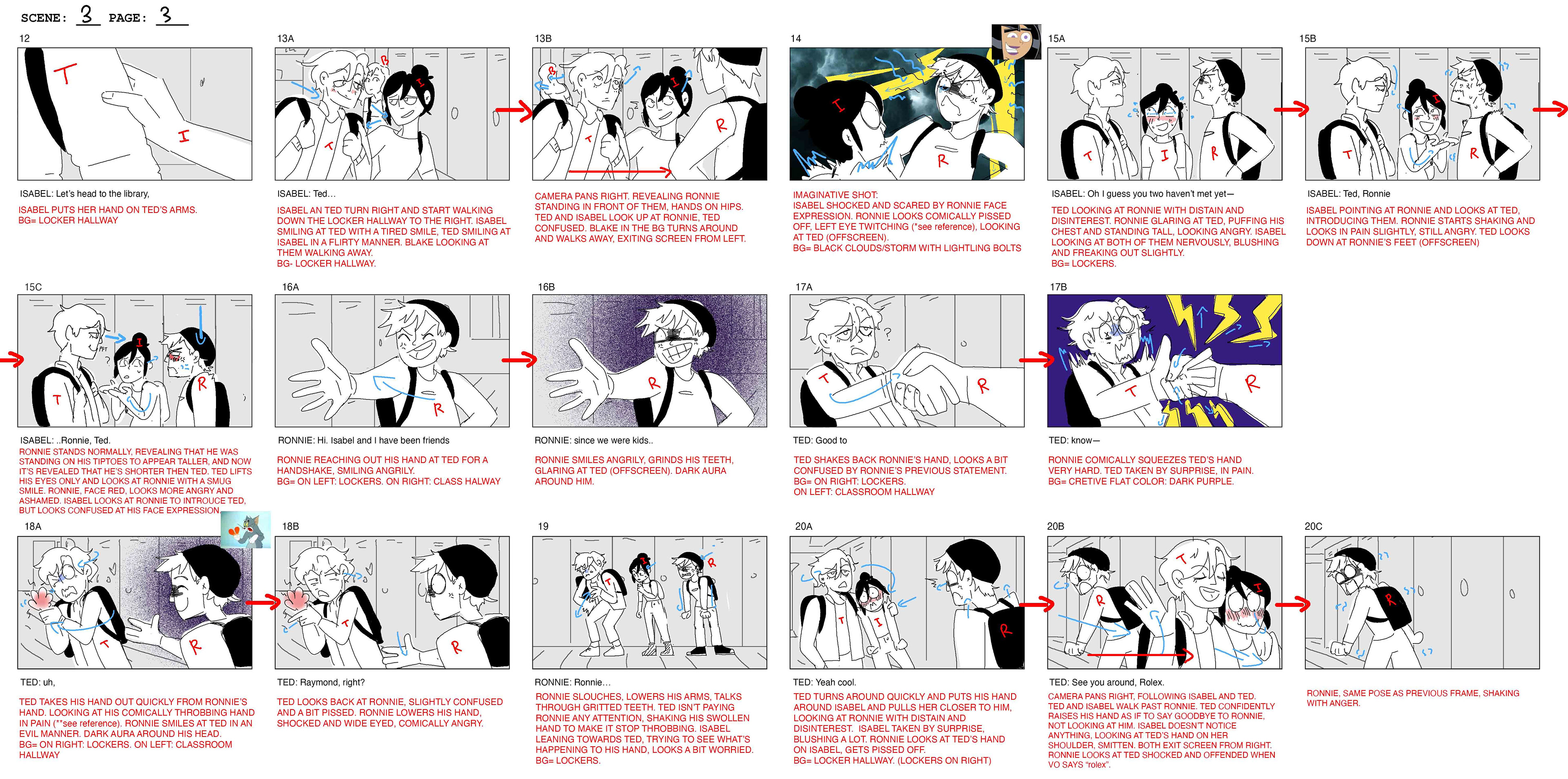Storyboards for a script called “OddFoot” for the Youtube Channel “MSA: My Story Animated” by Zvoid company.